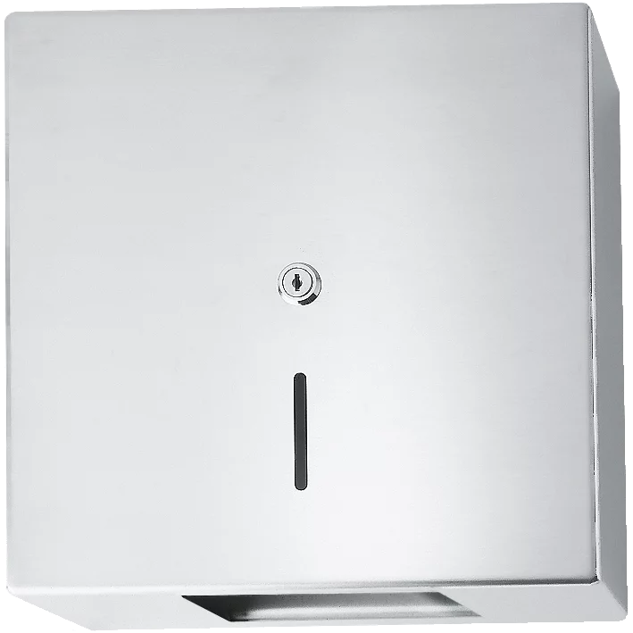 Manufactured from 2mm thick grade 1.4301 (304) stainless steel with a satin polish finish. The casing is held in place by a stainless steel rod fixed to the mounting plate and a security lock. Suitable for rolls with a maximum diameter of 300mm the square outer case has an inspection window to the front, and an integrated stainless steel tear-off edges. Fixings are included.