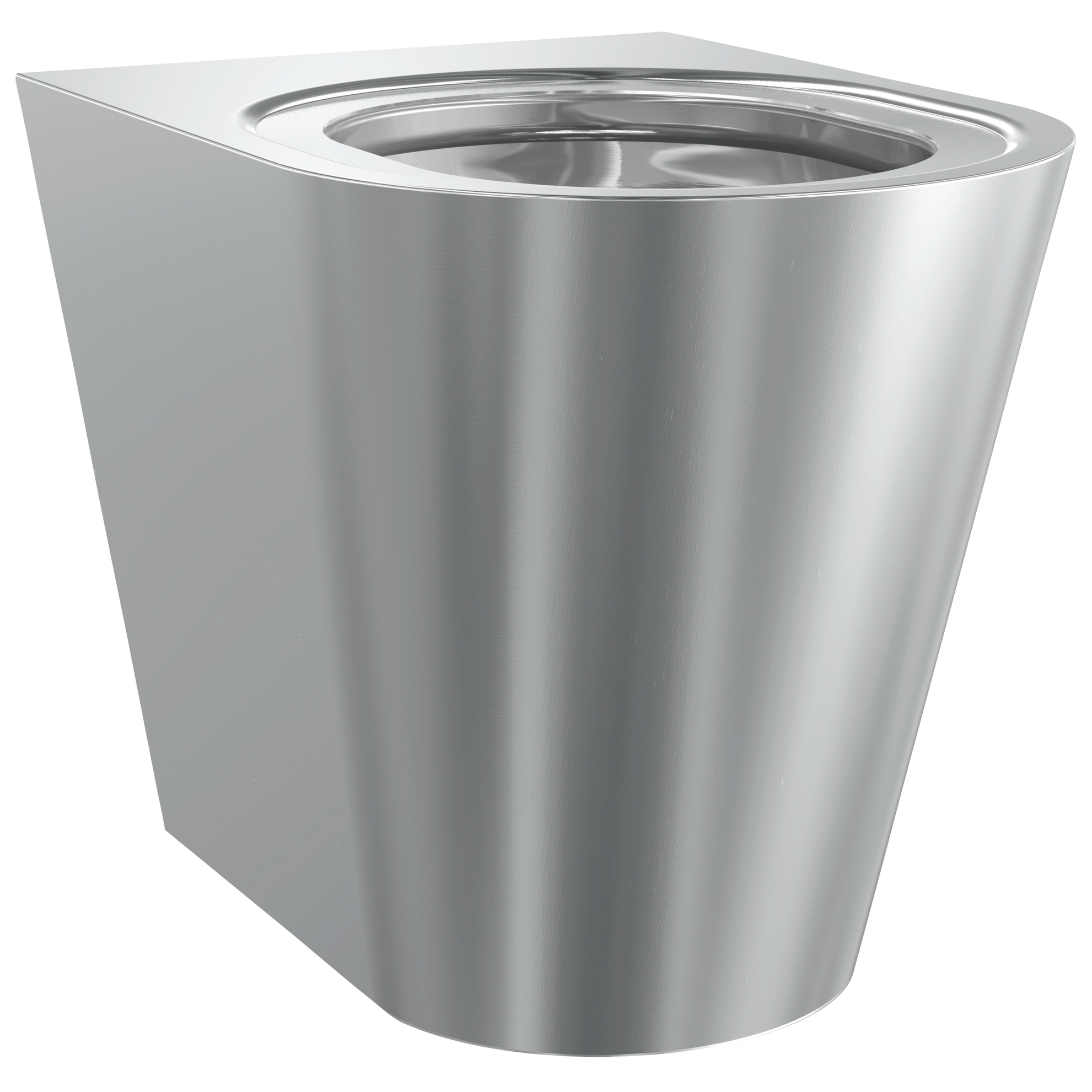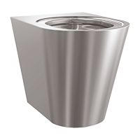 Campus floor standing WC pan for fitting through duct wall, manufactured from grade 1.4301 (304) stainless steel, material thickness 1.5 mm for the pan and shroud – satin polish finish. The WC incorporates a stainless steel P trap 102 mm o/d. A separate mounting plate and 4 bolts are provided for mounting the WC through a duct wall. The Campus WC has a pressed seating area that does not require a separate seat in vandal prone installations. However, a seat and lid can be fitted. Approval: Complies with BS EN 997 for 4.5 litre flushing. Also complies with the Australian and German test standards.