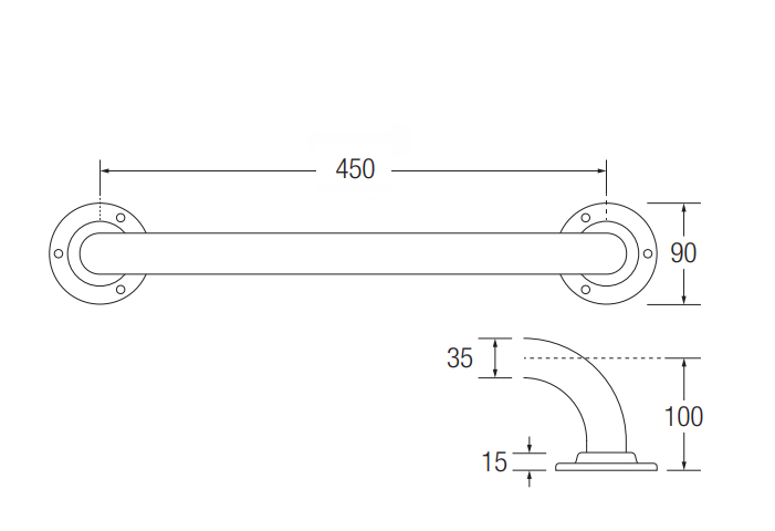 Blue (RAL 5011) coated steel individual grab rail. Designed with an economical comfortable diameter of 35mm. The vibrant coloured rails make it easy to identify against light coloured walls.