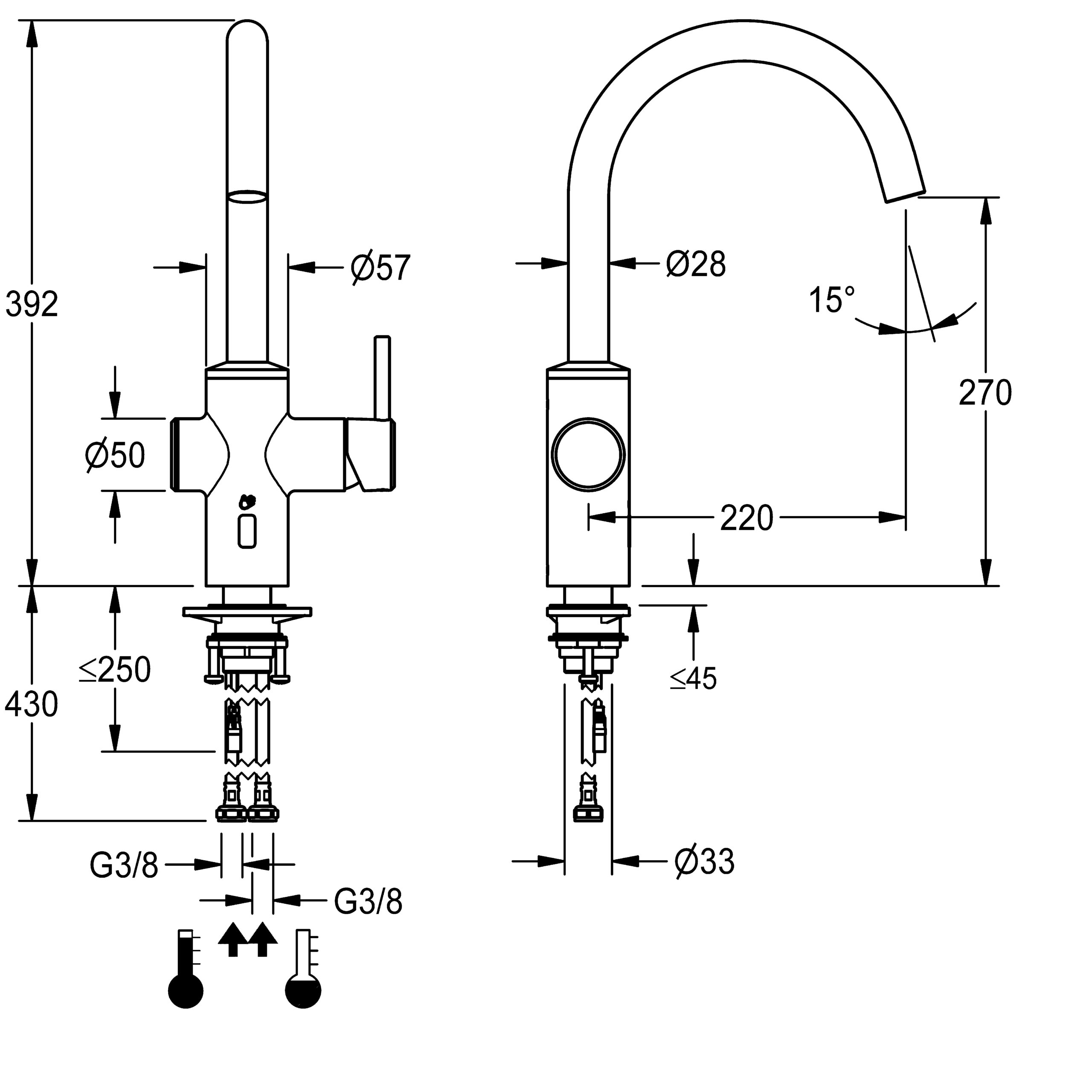 | Spout projection | 220mm |