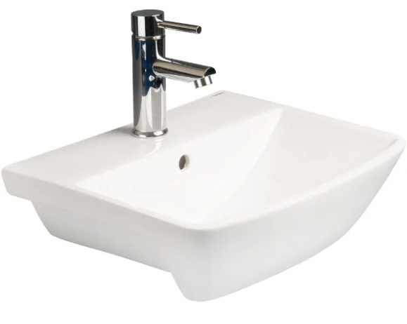 Langley 500mm semi-recessed basin with central tap hole, for installation into a semi-recessed vanity unit.