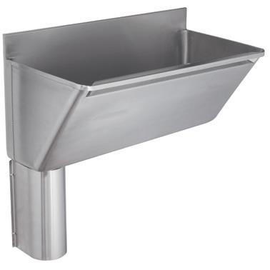 Surgeons scrub up trough manufactured from 1.5mm thick, grade 304 stainless steel, with a satin polish finish. supplied with 38mm waste outlet in the base of the trough for surface mounting. The top and bottom areas of the trough are fixed to the wall using joggle strips. Wall fixing screws and plugs are not supplied. L or R after the code number refers to the handing of the waste outlet ie. left or right when facing the front of the trough. Left hand bottom outlet.