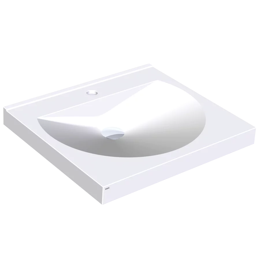 Ronda single washbasin manufactured from Miranit resin-bonded mineral material with smooth and pore-free surface with one tap hole.