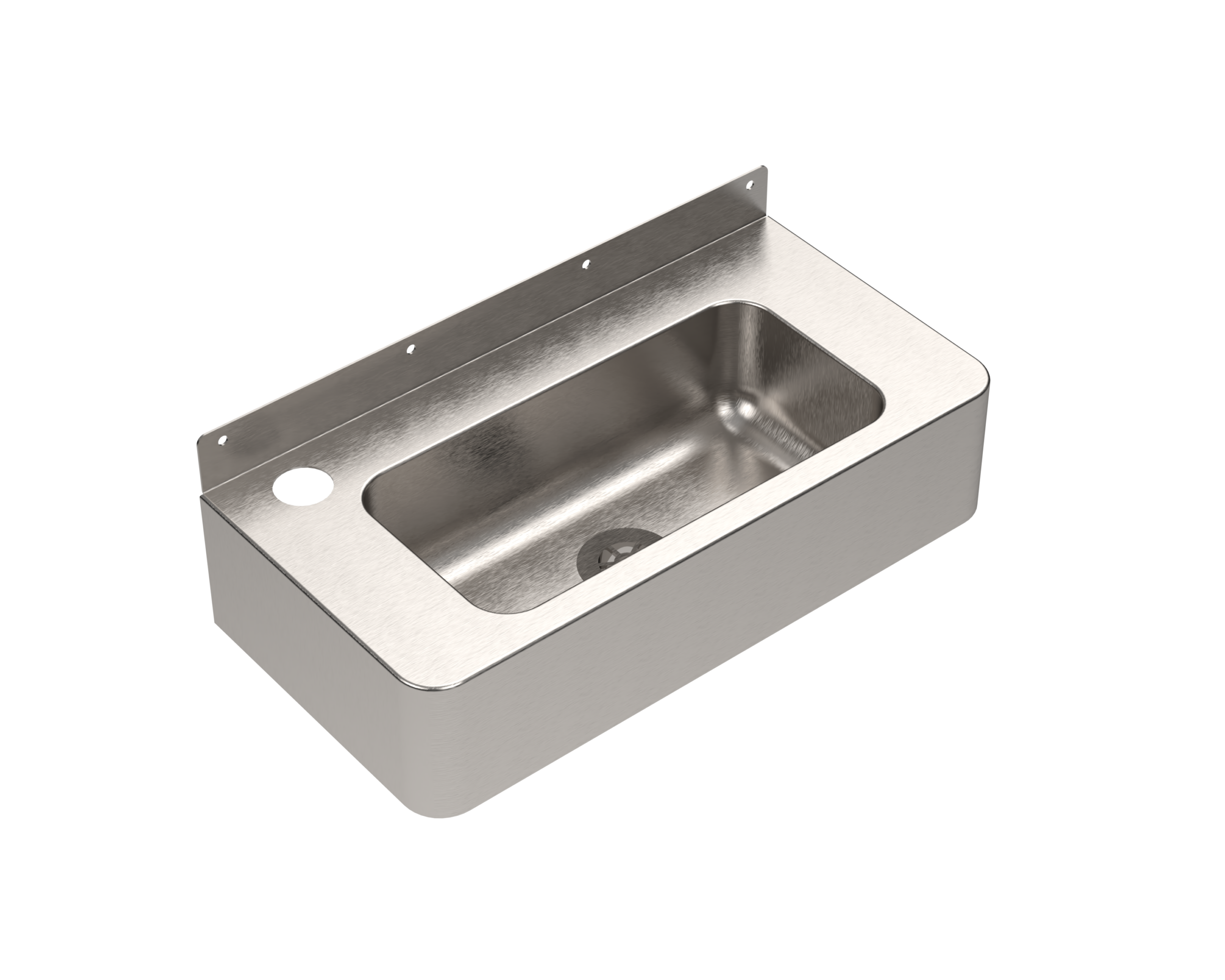 Stainless steel accessible washbasin for wall mounting. Manufactured from 1.4301 Chrome Nickel steel with a satin finish.